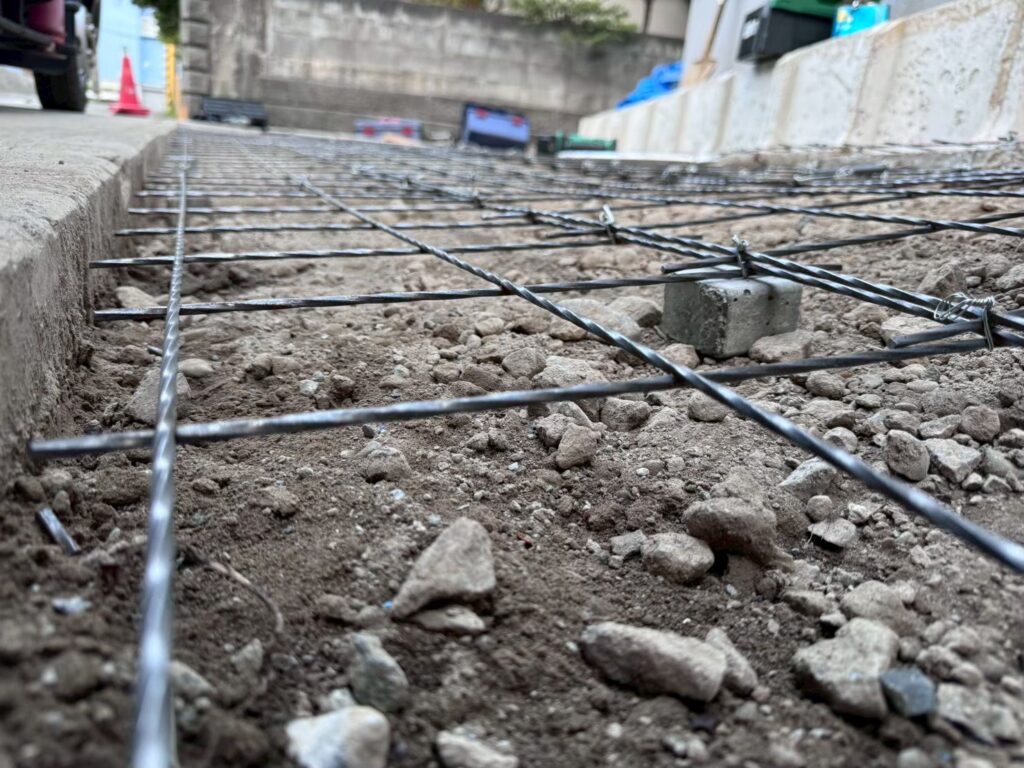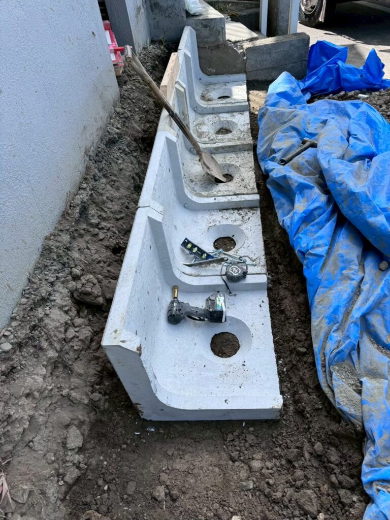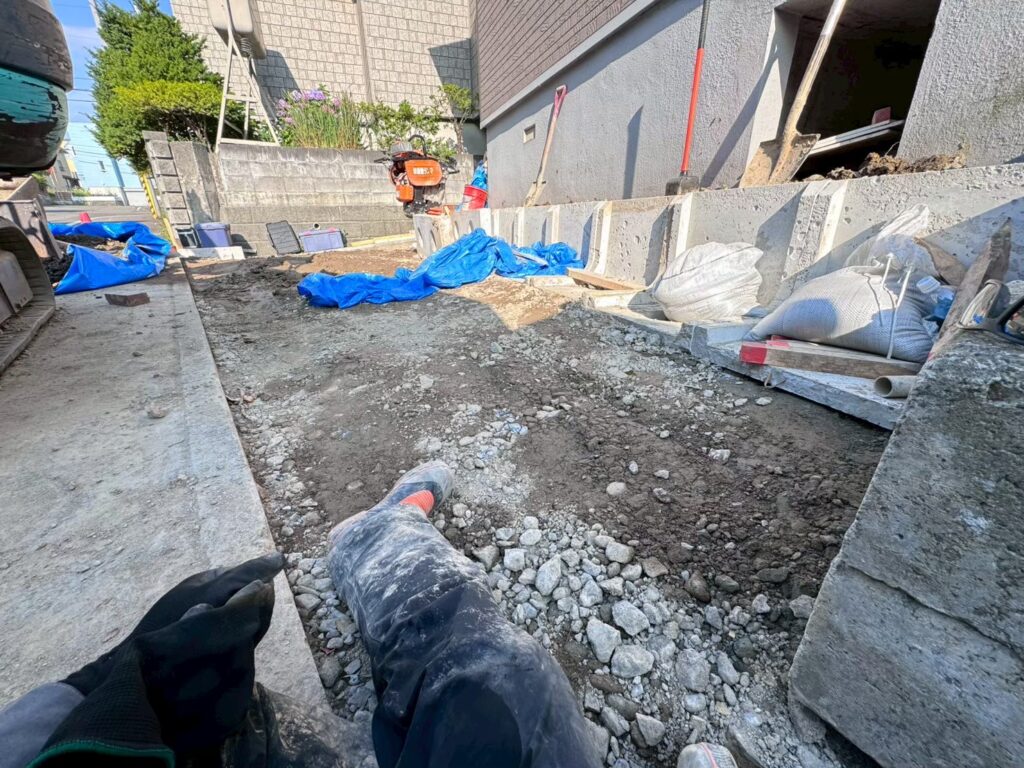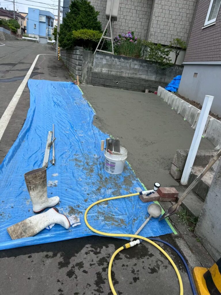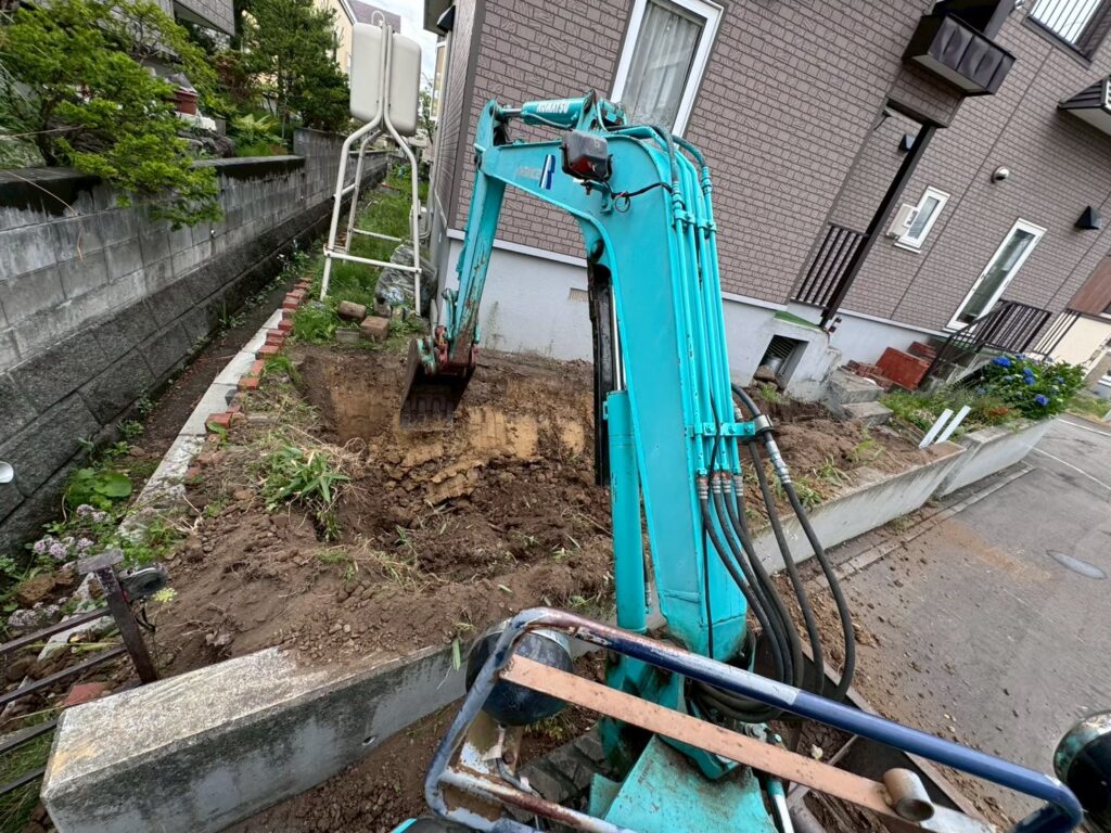 施工名コンクリート擁壁施工施工場所札幌市厚別区施工期間約2週間コメント残土掘削・コンクリート擁壁撤去・コンクリート土間打設。コンクリート階段の割れたところをはつってモルタル補修を行いました。コンセプトです。 施工前 施工中 施工後